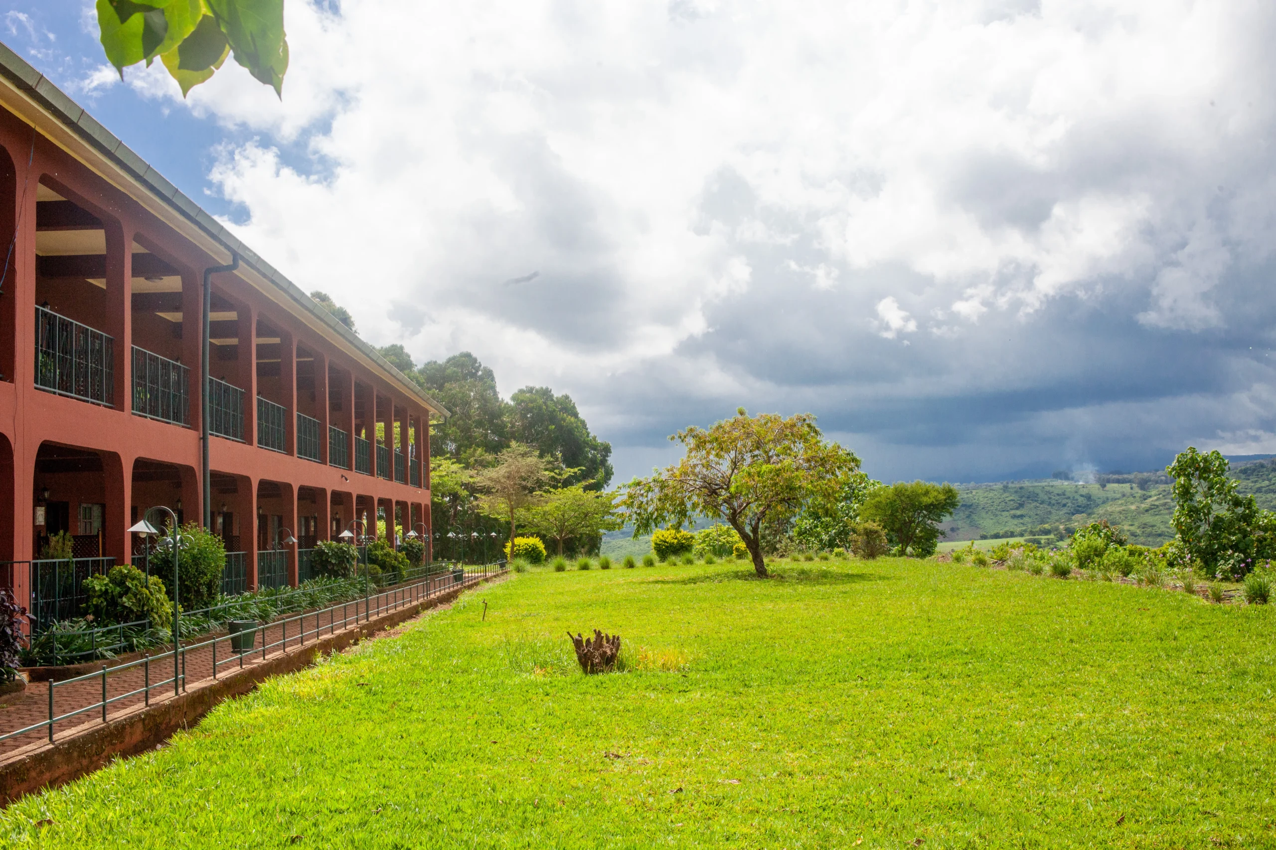 High view Hotel Located at high elevation above the town of Karatu, the hotel has spacious, comfortable ensuite rooms with a spectacular view over the surrounding hills and continental cuisines served in our fine indoor and outdoor restaurant.